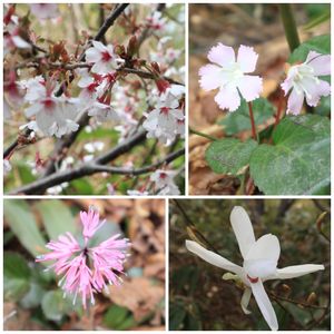 野山歩きのメンバーと高尾山へ(関東の高尾山ではなく金沢の) 標高843mの前高尾、奥高尾を目指しました。 ↖豆桜 ↙ショウジョウバカマ ↗イワウチワ ↘タムシバ 特に山桜と思っていたのがマメザクラだと教えて貰いました。 また、その他の山野草も多く見られましたが、グループでの登山なのでシャッターチャンスが余りありませんでした。 往復11kmで結構膝に来ました。 高尾山にて