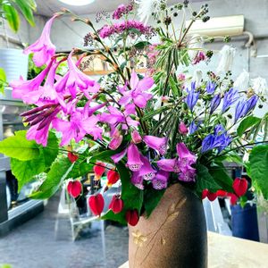 こんにちは(^^)💦 蒸し暑くて~💦💦 湿度84%堪りマセーン😵 友人がお花を切って持って来てくれました😀 1️⃣ルドベキア、ヤグルマハッカ(ベルガモット)、白花ネムノキ、タイマツバナ(ベルガモット)、黒鬼灯等々\(^^)/ウレシ~💗 ☆今日も穏やかな一日であります様に🙏💛💚❤️