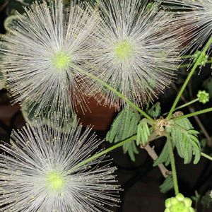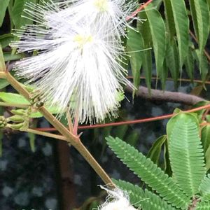 白花合歓木🤍 マメ科 カリアンドラ属🤍 夫が連れ帰って来たシロバナネムノキ✨ 丸く綺麗に咲いているところを撮りたかったのに見逃した😅 朝には咲き終わってしまうので😂 次回のお楽しみです😆🤍💓