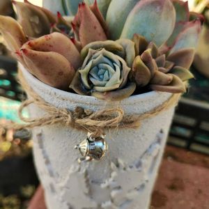ご無沙汰しております🙇 皆様お元気にお過ごしでしょうか? 少しの間、GS、sns等自分の好きな事が出来る余裕がありませんでした💦 冠婚葬祭等諸々、父の介護と色々と重なりバタバタ忙しくなくしていました 多肉さんのお世話も‥ 昨年の11月から1月中頃まで出来ませんでした💦 いくつかはダメになってしまいましたが、ほとんど頑張っていてくれました❗️ 多肉の強さを改めて実感です👏 今年に入って少しずつ落ち着いてきたので、ゆっくり仕立て直ししながらGSの皆さんの投稿を拝見させてもらったり、投稿もしていきたいと思います❗️ またこれからもよろしくお願い致します🙇 ①枚目 昨年の9月に寄植えしたものです ユリリンさんから頂いたリメ缶に、9月に頂いた苗をピンクのリメ缶に。 葉挿しの白牡丹をブルーのリメ缶に植えました 今現在ほんのり紅葉してくれてます😍 下はかおりんさんのお花のモチーフのリメ缶に、昨年の3月後半に寄植えしたものが💦 ラブリーローズ等夏にダメになり、10月と2月の初めに仕立て直ししました エンジェルの羽缶は9月に頂いた苗をモリモリ入れさせてもらいました😅 いつも本当にありがとうございます🙇 ②枚目 けいこさんからのプレゼント企画で頂いたソクモンちゃんとロイラビに植えたハナさんの苗 今は小さいままですが、春には少し動きがありますように🙏 下はかえるさんのプレゼント企画 fukumomoさんのエンジェル鉢のブラックサバスとユリリンさんのハートのリメ鉢のシルエット かえるさんの赤い大きなリメ缶にはメデューサを植えてセダム等を足しました! 2月に植替え作業したので、無事に根付いて‥ 春に少しずつ大きく成長してくれますように🙏 ③枚目 昨年の10月 イベントでちまちま屋さんが初出店するというので娘と行ってきました❗️ お昼前頃行ったので欲しいセダムは売り切れていましたが‥ なかなか増やせない気になっていたドラゴンズブラッドとレッドベリーを購入しました 可愛いパンダ🐼さんと🐏さんも購入 GSのはなずきんさんのお友達がご一緒に販売されて居て、色々と説明して下さったりと有難く嬉しかったです🙇💕 クミピさんから頂いたハロウィン🎃の置物と一緒に❗️ モリモリの購入したセダムと撮りました📸 ドラゴンズブラッドは今は先っぽだけの寂しい感じになってしまいましたが💦 10月購入後帰ってすぐ増やす作業をしましたが、1番いい季節にお水をもらえずこんな感じですが、暖かくなったらまた増やせたらいいなーと思ってます❗️ やはり多肉事楽しいです❗️ 今は寒いので長時間は作業出来ませんが❄️ 父の介護の合間に楽しみたいと思います😊