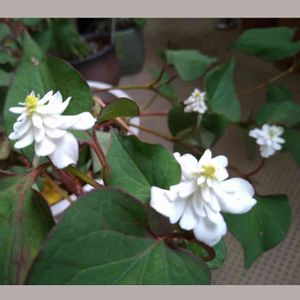 八重咲きドクダミ ー東京からやって来たー 「清楚で美しい」とコメントを送った花友さんから、他の珍しい山野草なども一緒に送っていただいた。鉢に植えたドクダミやその他の野草も根付きつつある。 さちさん、ありがとう💕