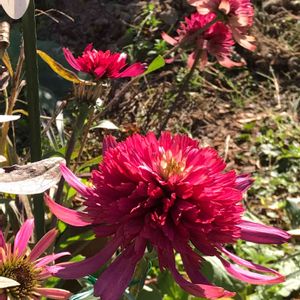 こんばんは、連投失礼します。 エキナセア ブラックベリートラッフル 秋植えで咲いた2種類の一つ、背丈は 低いですが1輪咲いてます。 寒いせいか花もちいい気がします。