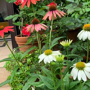 エキナセア 玄関前の鉢植えが咲き揃う シャインスピリット