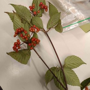 ミヤマガマズミ(レンプクソウ科)神奈川県より 2024.10.01撮影📲在来種 いつも小鳥さん達にさっさと食べられちゃうので、今日試食❓に行って来ました…😆⸝꙳.˖ 此処は崖で、恐る恐るです👩🏻🦯➡️ ガマズミ、コバノガマズミとの違い👇🏻 🍃葉っぱの先が急に尖る 🍃葉っぱの大きさは大中小様々! (ネットブログでは、違う事が書いてあったりする) 🍃果実は丸い