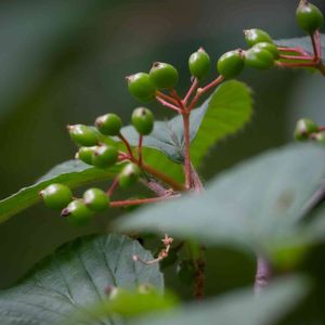 樹の木曜日。ミヤマガマズミのも順調に実をつけていました。赤い軸がいい感じでした。2024.05.29.撮影