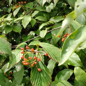 里山の近くの実家の裏庭で見つけました。果実が赤く熟していました。 ガマズミ科。