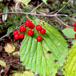 日陰管理してきたミヤマガマズミ 今年は🎈🎈🎈実成りがよく、🌿葉っぱの葉やけも抑えられました。 小鳥( •ө• )さんが食べてしまう前にひと枝切って飾りましょう😋