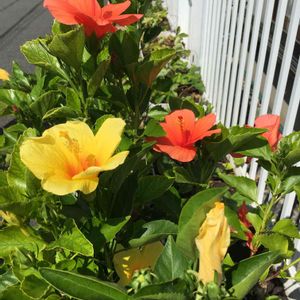 ミニハイビスカス ’ ハワイアンベイビー ’ また、咲きはじめました〜╰(*´︶`*)╯🌺