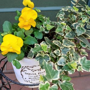黄色のパンジー 元気いっぱいビタミンカラー💛 いつからあるのかわからない 増えすぎたヘデラとともに