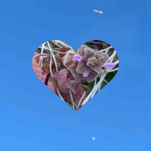 昨日の散歩にて🚶♀️ 青空に飛行機とお月さま✈️💙🌓 ヒメオドリコソウは葉を赤く染めて花はちぢこまってる🥶