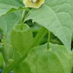 ヒロハフウリンホオズキと教えていただきました🎵 ホオズキが 自生しているのを 初めて見ました😲 右側がピンポン玉くらいの大きさです。 赤くなるのかしら? 小さなお花も咲いていました😍