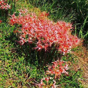 今日の夕映え 山の稜線と 彼岸花が 茜色に
