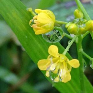 長野県中綱湖 右は湖、左は田んぼ🎵 お花の宝庫⤴️ スカシタゴボウに 会いました😆 雨降りでしたので、 水玉付き🎵