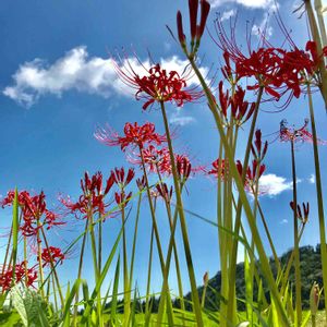 ポツンと ひとり咲きの 白曼珠沙華 花弁や蕊の曲線が 伸びやか