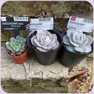 3/11にDAISOからお迎えしました🌿😃🎵 リハビリの病院🏥に行く途中にDAISOが出来ました✨ 駐車場🅿️側の入り口に3つだけですが多肉トレーが🌿🌱🌿 半分ほどになっていましたが我が家にいない子をお持ち帰り🧺 上の子は『多肉植物』とあるだけでお名前不明😅💦 かわいかったので一緒に連れて帰りました🚶♀️💨 DAISOのちっちゃな鉢の子って強いですよね😉