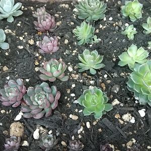 春になって、気付いたら多肉植物が増えました。これからの変化が楽しみです。 植え付けている土は山野草の土を使っています。