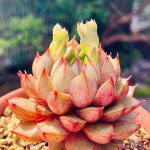 どんどん増える我が家の多肉💚💛🩷 まずはアーモンドネックレス😆🩷🩷🩷 生産者さんからおすそ分けしてもらいました😆✨✨ 今度は取り込み忘れしないよう気をつけます🫠 生産者さんのところからはコチレドンの白桃もお迎え😄 これどう成長するのか未知数なのでこれからが楽しみ😆 🏷センペルンルン月間 すでに子沢山で大きいオールドコッパーと正しくはジョビバルバのカリシュさん😊💚❤️ この2つ盆栽鉢に植えてみようと思います🪴 最後にダイソー産ヤマトヒメ😊 大和錦なかった代わりに今はこれなのかな🤔 葉裏に大和錦感あり😳