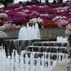 福井県鯖江市 西山公園 ツツジが見頃になりました 噴水や芝生の広場 道の駅も併設しています (2023/04/28夕方撮影)