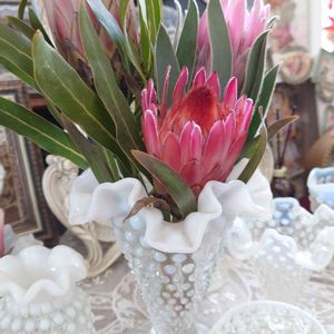 あれあれ? 1つ全開を待っていた プロテアスパイキーホワイト 2つ目も咲いてきています あまり雪が積もらない この地域にも23日雪が積もりましたが 元気に咲こうとしてくれています (*ˊᵕˋ*)੭ ੈ❤︎