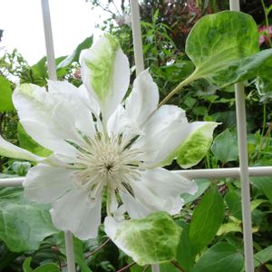 金曜日のコマツビル屋上庭園 クレマチスさん 白色は、見たことありますが 葉っぱのような緑がミックス ?❇️💗
