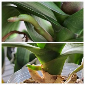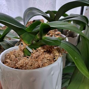 胡蝶蘭💚 たまには向きを変えてと思って見たら❗ 又、子供が…。 今年はどないなってるんやろ⁉️ 花芽を待ってるのになぁ😅🌱