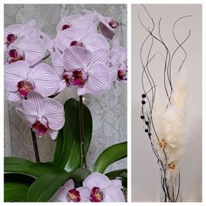 胡蝶蘭💮 連れて帰って来て😱 家に入って見たら❗ 花びらが2枚💮 落ちてたぁ😖😖 ゴメン😢 荒い扱いして❗ 他の子達も持って家までは大変やってん😥 ➡️の子も持ってたしなぁ😰 茶色の棒の様な茎? だけは、前から居た子です😊 背が高いからカット✂️して花瓶に他のドライフラワーと同居してた子やでぇ😘 白いふわふわ欲し買ったから嬉しいわぁ😃