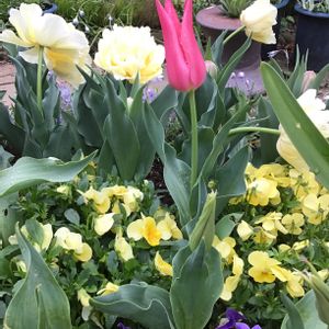 どんな名前の チューリップ🌷 だったっけ..... と、 この手前の ひょろりとした チューリップ🌷 買った時に 写しておいたpicから ゆり咲きチューリップ マリエット 桃 って言う事が 分かりました〜‼︎ 咲き出す時期は 遅いですが、小さいチューリップで 推移して来ましたが、最後に 急に 猛スピードで 成長して 一気に 花咲かせました〜💕💓 細くて 最後には 背も高くなって、 切り花には とっても イケルお花🌷です❣️👍 良い色してて、この色 素敵💖💕