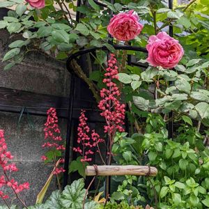 今年は少し遅いかな🤔?。。 お庭の薔薇ちゃんが咲いてくれました🤗💓 私が思う、ローズ色らしいローズ💓 ヒューケラの花と色かぶってる〜🤣✨