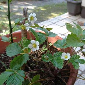 今朝は、冷えましたね~🐧 久しぶりの青空で 清々しい☀️ 一度ご披露したイチゴちゃんです。 この寒さの中 🍓の白い花が 咲いています💠💠🌱💠💠 種類は、わかりません🎵