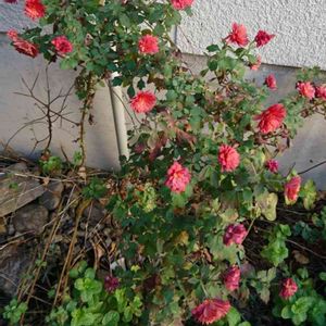 お早うございます。 クレマチスの種が くるくる🌀,,, 風にふかれて 庭中 知らないうちに あちこちに 芽を出してくれますよ🌱 蔦は、赤く色づきました🎵