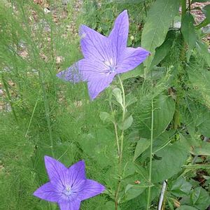 今日のお花 桔梗 自宅庭の隅に アスパラガスの緑の中に 咲いていました🌱💠🌱 アスパラガスは、小鳥さんのプレゼントです❤️