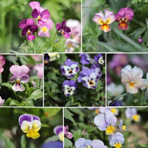 自家採種して 秋まき 今ごろ小さく咲いてきました😊 φ(..)名前の記録 上段:左から→アンティークコレクション·アンティークラベンダー・モモカ シンシン(と思う) 中→ピンクアンティーク ・パンジー・プレミアムミックス·パステルピンク ビオラ 下→お名前ない紫色系。色んな模様で生えてます😄