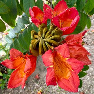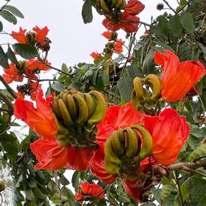 島のカエンボクの続き⛴️ アフリカンチューリップ🌷とも呼ばれるこのお花は本当にチューリップが集まって咲いてるようで豪華です〜✨🧡✨🧡✨😍