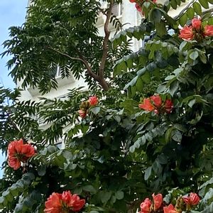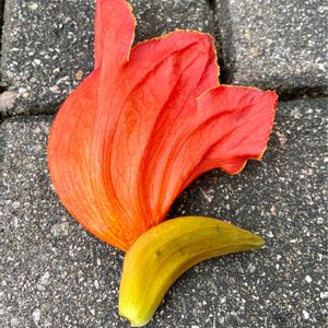 背が高〜〜い木から落ちたてのカエンボク🧡♥️ 今でもたまに咲いてる木があるんです〜 しばらくはモリモリ咲かないと思うので、たくさん咲いてる様子はタグ🏷️から見てください〜😍パッション‼️🔥🧡♥️