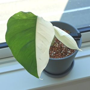 真っ白の葉っぱが徐々に開いてきた♪ 白い葉っぱはやっぱりちょっと小さめ💦 早く穴のあいた葉っぱが欲しいけど 多分これ、デリシオーサ… そこまで大きく育てられるのか…