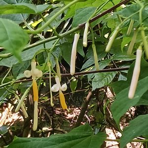 おはようございます☀️ 家の鉢植えのカシワバアジサイ💚 何年も咲きませんでした。 植え替えなければと思っていたのが、鉢から下に根が出たみたいで 今年はお花が2つ咲きました。 長い穂状の花なので、雨に濡れ垂れ下がっていました。