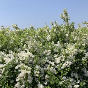 こんにちは😃 爽やかな五月晴れ。 童謡・唱歌、『夏はきぬ』の歌詞。 卯の花の匂う垣根に、時鳥早も来鳴きて、忍び音漏らす、夏は来ぬ。 今の歌謡曲の歌詞と違って、5.7.5や5.7.5.7.7の語句の並びに似た言葉が並びます。 だから、とても自然に心に響きます。 私の大好きな歌詞の一つです。 子供の頃、『早も来鳴きて』の意味がわかりませんでした。 早くも、来て、鳴く。 の意味だと分かったのは、だいぶ大きくなってからのことです。 その歌詞の卯の花とはウツギ(空木)のことだそうです。🤔 この写真の垣根の花はヒメウツギです。 丈は1m程です。 本来のウツギは大きなもので平屋の屋根に届く程あります。 だからホトトギスがやって来てもおかしくありません。 しかし、このヒメウツギは大型の鳥、ホトトギスが止まる様なことはないでしょう。😅 それでも五月晴れの空に、真っ白な花の咲き乱れる様子は、卯の花の匂う垣根を連想するに足る、美しい光景です。😘