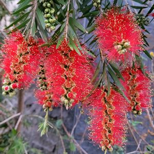 鮮やかなブラシノキ。今年もご近所さんに咲きました。