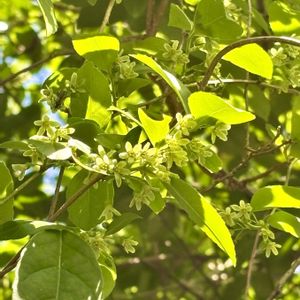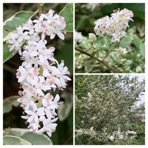 おはようございます😃 昨日は気温が30度を越して、真夏のような暑さでした。 今朝は曇り空です。 空気も少しひんやりしていい気持ちです。 樹木の花が好きな私にとって、次々に咲く花を撮るのは大変です。 最近では、丈の低い園芸品種も多く、日本原産のものを見つけるのが難しくなりました。 これもやはりそんな花です。 日本名はコミノネズミモチ。 しかし、葉っぱが白い斑入りです。 シルバープリペットと呼ばれているようです。 中国や台湾が原産で、チャイニーズプリペットという花の斑入りでしょう。🤔 私の好きなイボタノキの仲間で、街でもよく見かけます。 葯の色がピンクです。😊 セイヨウプリペットとかヨウシュイボタとか呼ばれる似た花は葯の色が黄色だそうです。🤔 日本のイボタノキやネズミモチの花も投稿したいと思います。😊