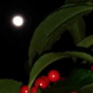 万両と満月🌕 23時20分 星も瞬いていました✨🌟✴