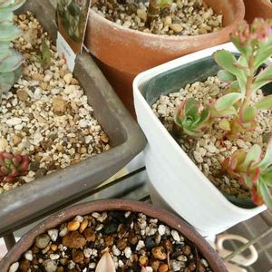 お気に入りの多肉さんをお気に入りのリメ鉢に植え替え 植え替えで ラウリンゼのお粉がハゲハゲ~(>_<)