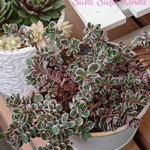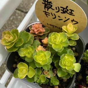 おはよ〜❣️ 今回の多肉ツアーの中で、ちょっと変わり種❗️ 散り斑キリンソウ💕 モリモリ増えて欲しいなぁ〜😊