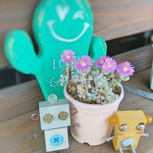 今日は節分👹 先日セミオーダーお願いした、 YUKIさんの節分鬼ちゃんロボ🎶 可愛い〜(♡︎ˊ艸ˋ♡︎) …に金棒っぽいサボテンを添えて。 そして左は、メルカリで頑張った✨chiruyaさんのリメ鉢🎶 素敵すぎるわ。。(♡︎ˊ艸ˋ♡︎) …に、この鉢には絶対これ入れたい❣️と思ってたシャンパンライム(春萌錦)😄 やっぱり似合う〜✧︎◝︎(*´꒳`*)◜︎✧︎˖ ニマニマがとまらない☺️ 満足🎶