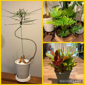 本日植え替え⇨室内移動組 ダイソー出身ボトルツリーからの挿し木株 一回り大きな鉢に植え替えようと取り出したら植ってたところが良い感じにボトルってたのでその部分を出して元の鉢に植え替え ついでにヒョロヒョロの茎も曲げてみた✌️ 元斑入りのセローム 5⇨6号鉢に植え替え 色が微妙なのは斑なのか栄養不足なのか微妙なところ… 根っこはかなり元気だし 次々と葉っぱ出すし 斑だと信じたい🥺 春に剪定した茎を挿し木したクロトン お気に入りの鉢に鉢上げ 花束みたいで可愛い みんな元気に越冬してくれますように🙏 2枚目おまけ ボトルツリー元株 この子はずっと室内育ちだったので今回は植え替えてないけど 挿し木の子みたいに土の中は面白い型になってるかも🤭 余裕があったら植え替えてみよう