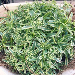 こんにちは😃 花壇の中の斑入りスーパーアリッサムが気温が下がり花を咲かせてリーフの色も良い色合いになってます❣️ 寒さに強い子です🤍💚 挿し芽で増やして3代目⁇でしょうか⁇