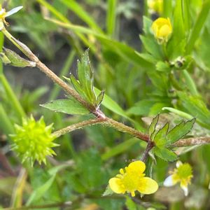 キツネノボタン 狐の牡丹 キンポウゲ科キンポウゲ属 おはようございます💕 今朝のらんまんはヘビイチゴでしたね☺️ どこにでもありそうでありふれてて写してない😨でも我が家の周辺では見当たらな〜い🥲💛 先日もpicしたキツネノボタンです。コンペイトウのような実が出来てました💚 オオバコもウハウハの草でしたが、なんと最近らんまんで出てきたような大きめの種類のオオバコを見ないのです😨💚 人里近くで人に踏んでもらって種を出し増えていくのに、踏まれなくなったからかしら⁉️ 今日の言葉 おまんら〜 全部名前あるが〜や 時計は又こうたらえい(買ったらよい)