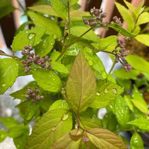 錦の日 2投目 シモツケの葉っぱ 2色に変身 引越しして、すぐに植えた記念樹です♡