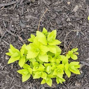 ・シモツケ ホワイトゴールド 去年の秋に購入した苗木。 落葉したあと地際でカット→芽吹き。 とってもキレイな葉色♥️