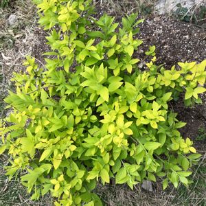シモツケホワイトゴールド 若草色の葉が目を引きます。 もう少しすれば、白い花もお目見えです。