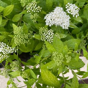 白い花、黄金葉のシモツケ ホワイトゴールドです😌